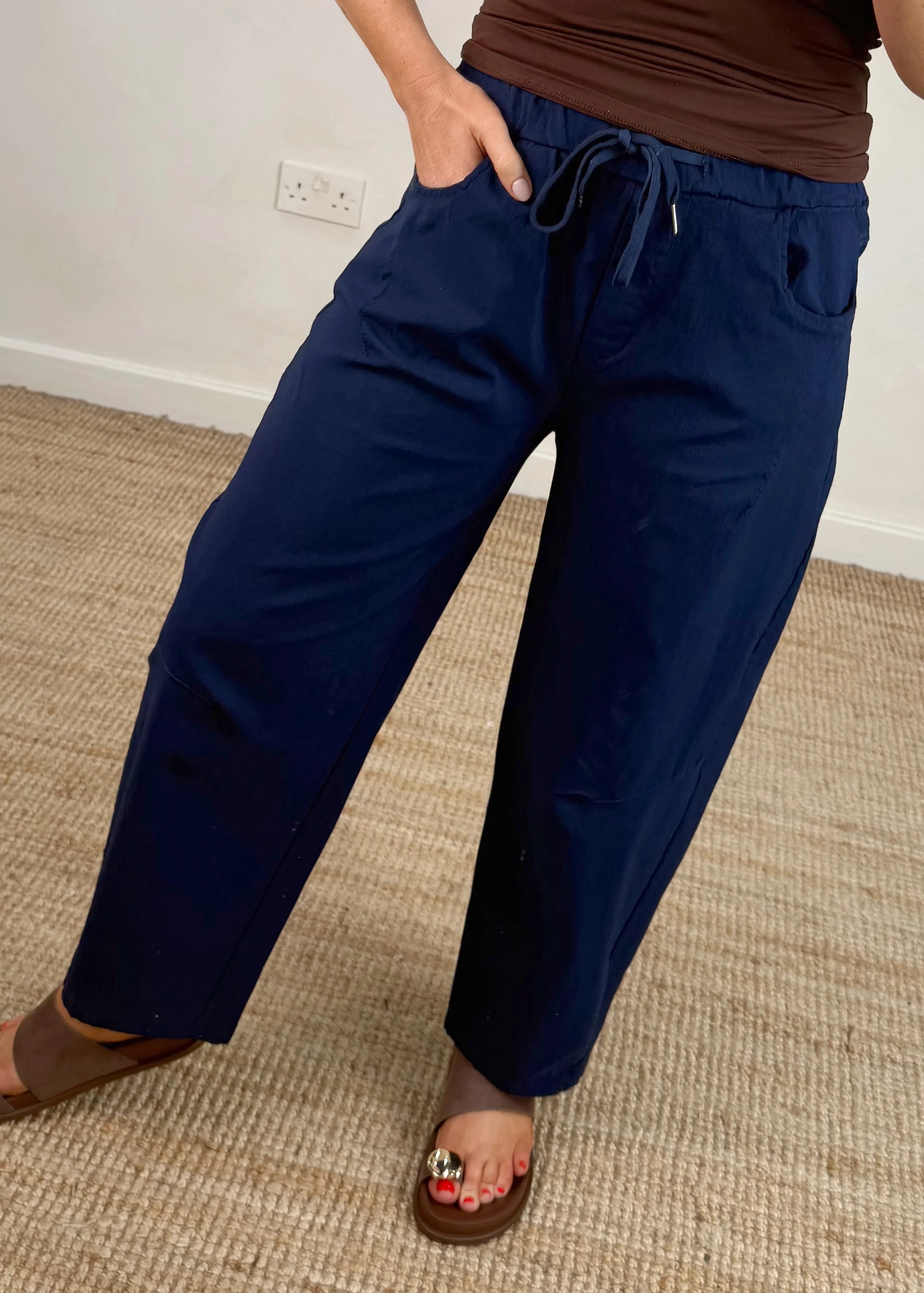 Crafted in Italy with meticulous attention to detail, these barrel leg magic pants are the versatile essential every wardrobe needs this season.