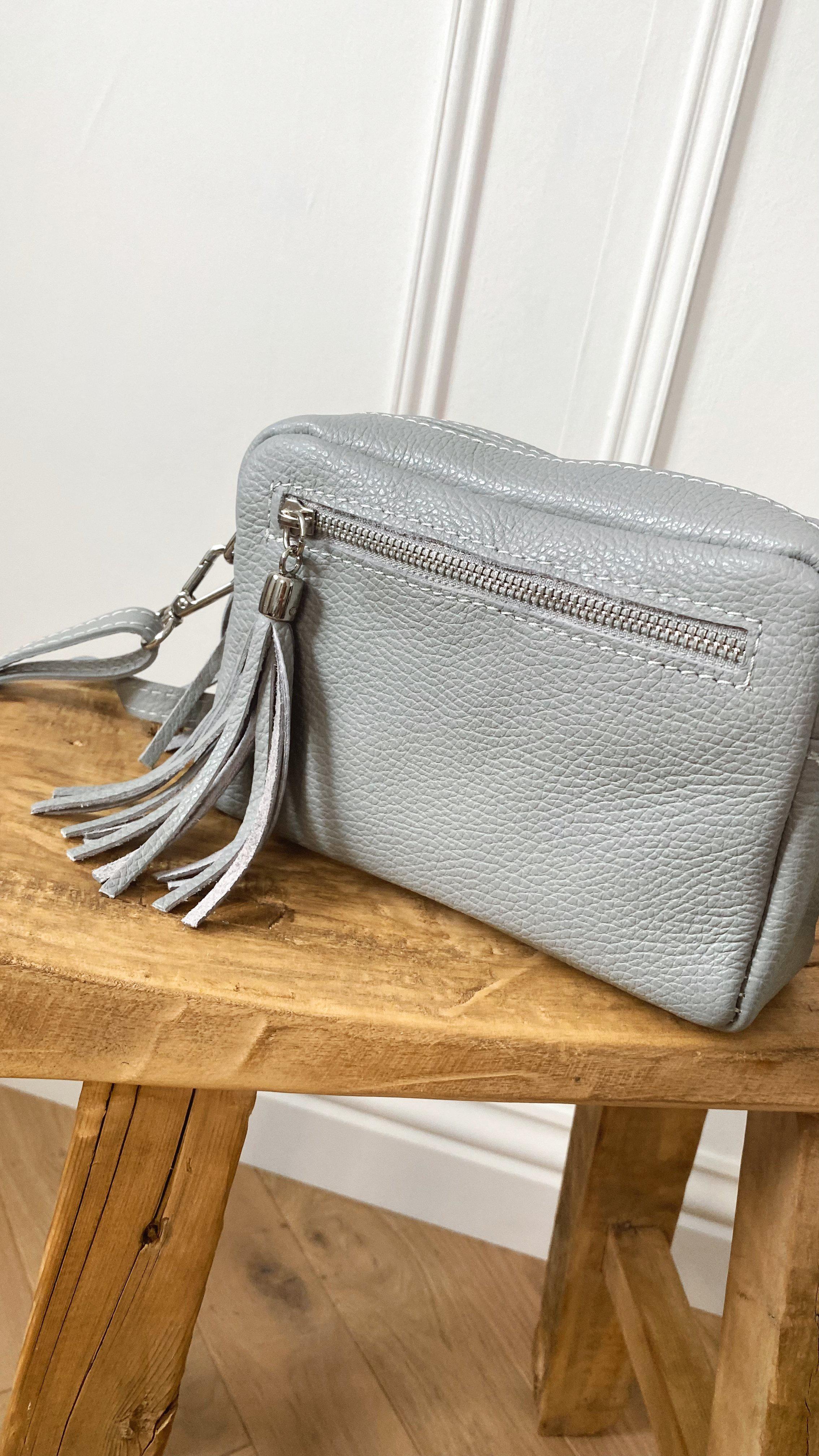 Real leather cross body bag with double tassel, front zip and removable shoulder strap....Perfect SS22 accessory…